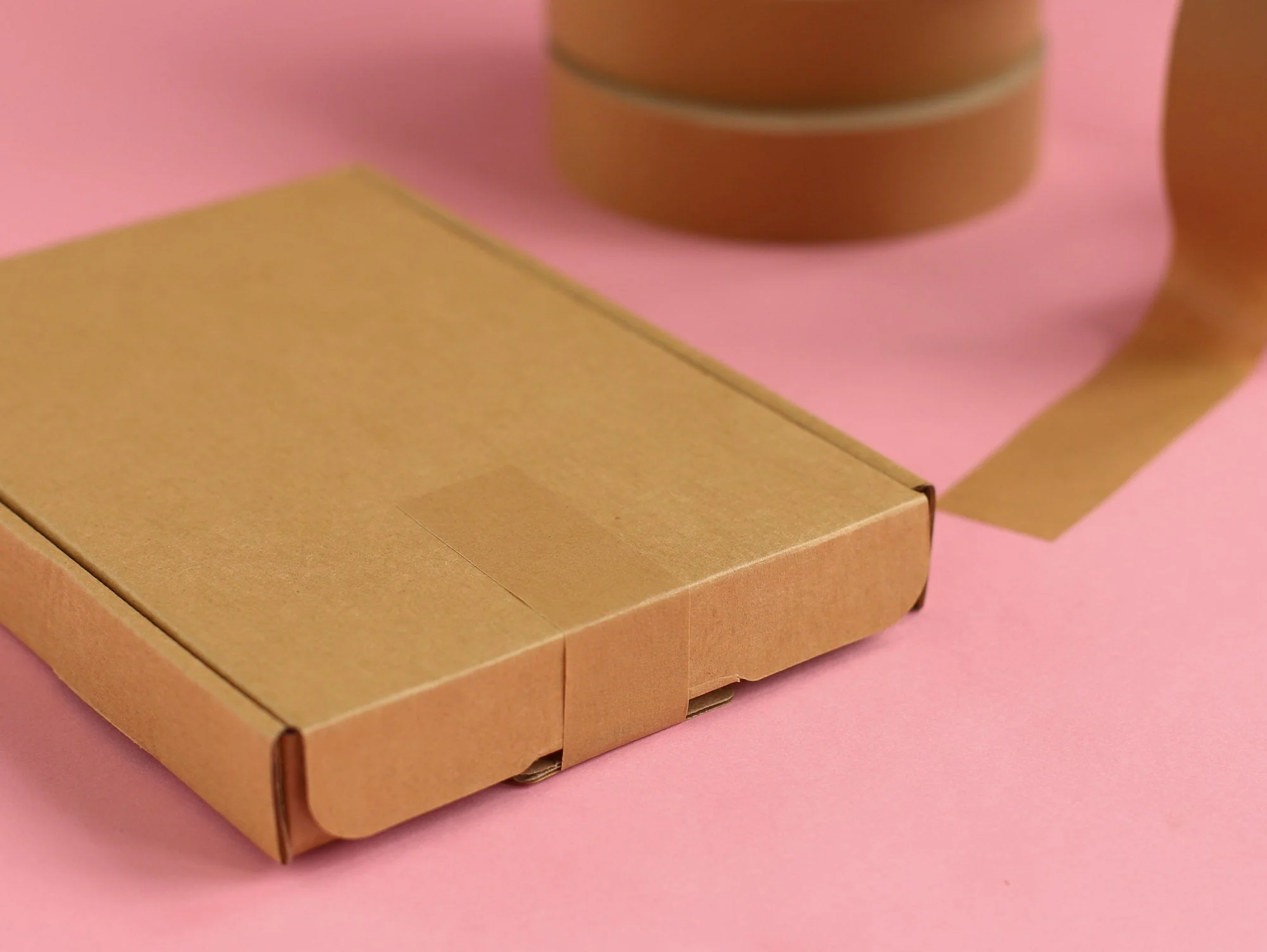 The perfect eco alternative to plastic tape! This kraft paper tape is 25mm wide.