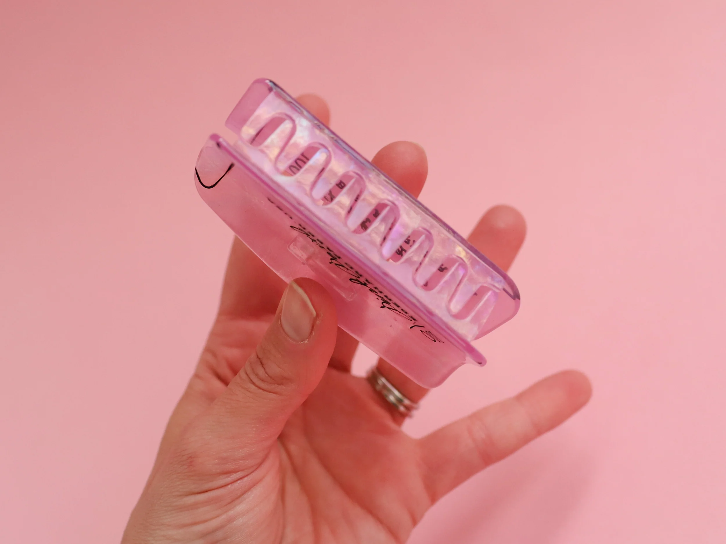 Inspired by the humble eraser, this hair claw is made from cellulose acetate and designed in Portland, USA by my pal Emily. The old school eraser (or rubber, if you will) design makes these hair clips perfect for teachers, students, stationery lovers, artists, bullet journalers or anyone else who wants to wear their heart in their hair!