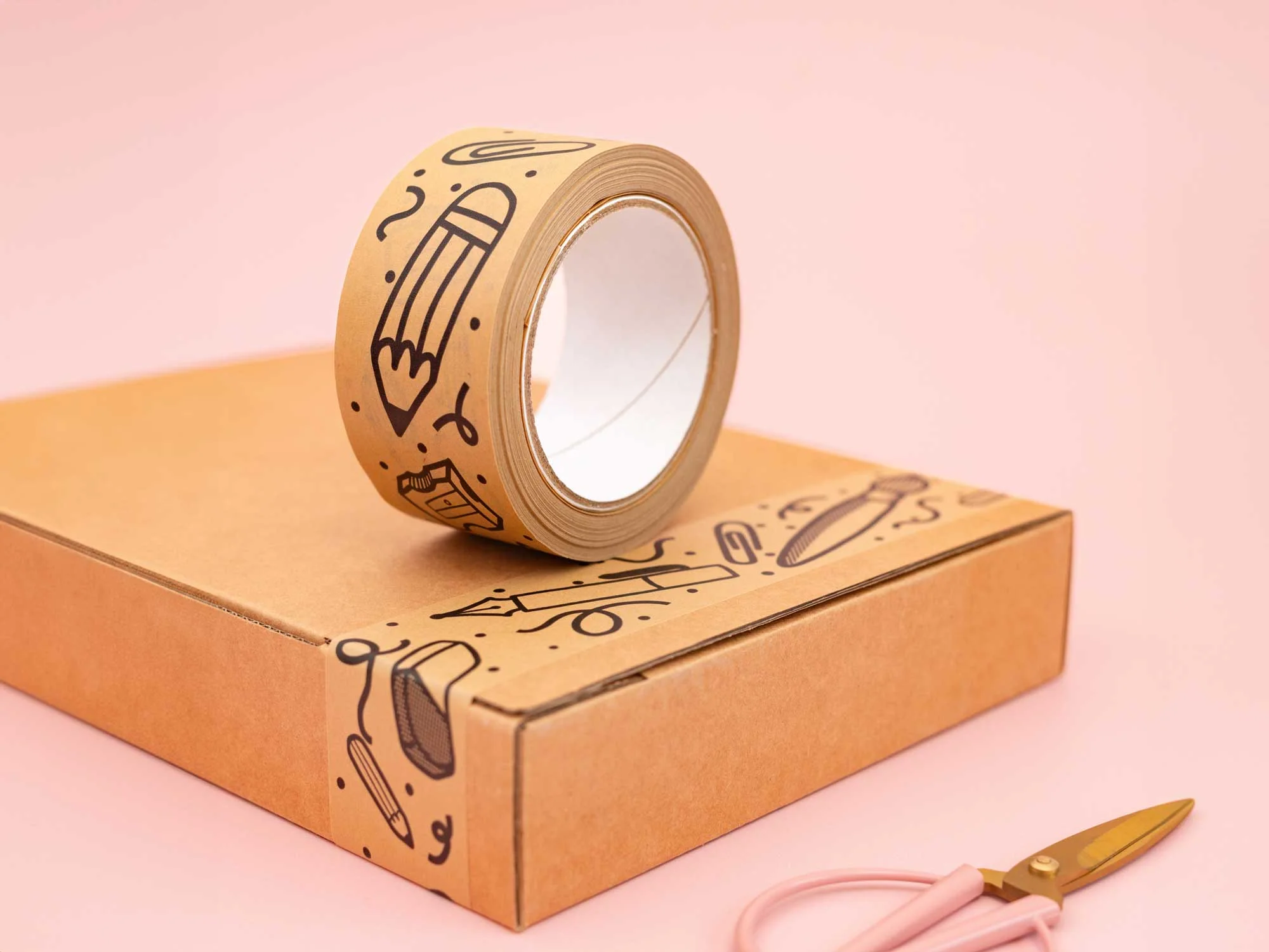 Decorate your life with Stationery Doodles with our illustrated Tape! This kraft paper 50mm wide tape is decorated with my favourite art supplies including fountain pens, pencils and erasers - which I hand drew in my own style.