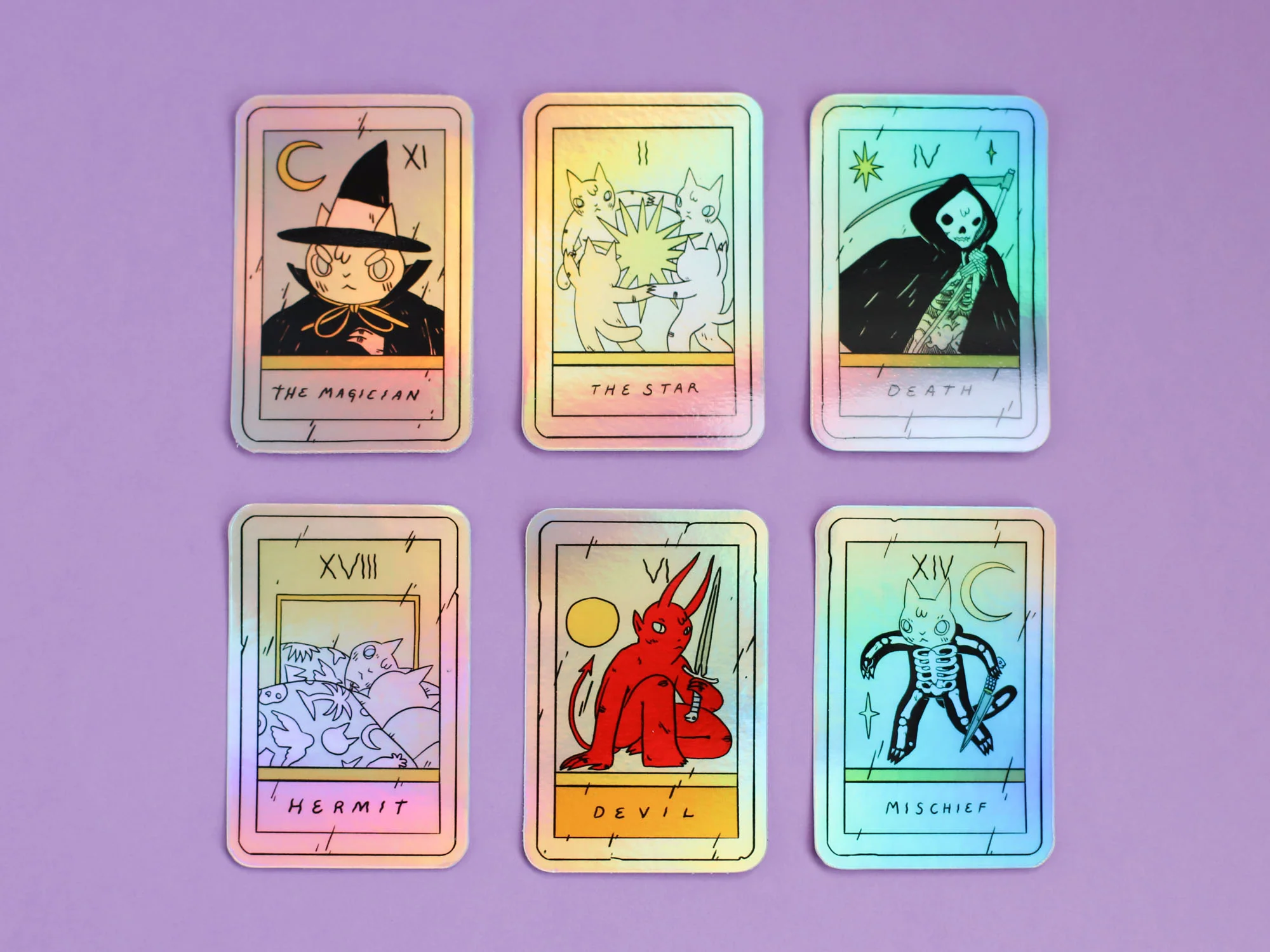 Tarot Card Holographic Stickers by artist Deth P. Sun.